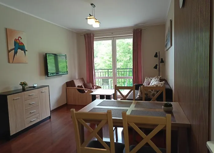 Apartament o powierzchni 40 m^2 jest maksymalnie 1 km od SkiArena Szrenica i w bliskiej odległości od Muzeum Mineralogicznego Szklarskiej Poręby. Goście z łatwością znajdą Rodzinny Park Rozrywki Esplanadę sp. Z o.o, które leży jedynie 5 min piechotą od tego apartamentu.
